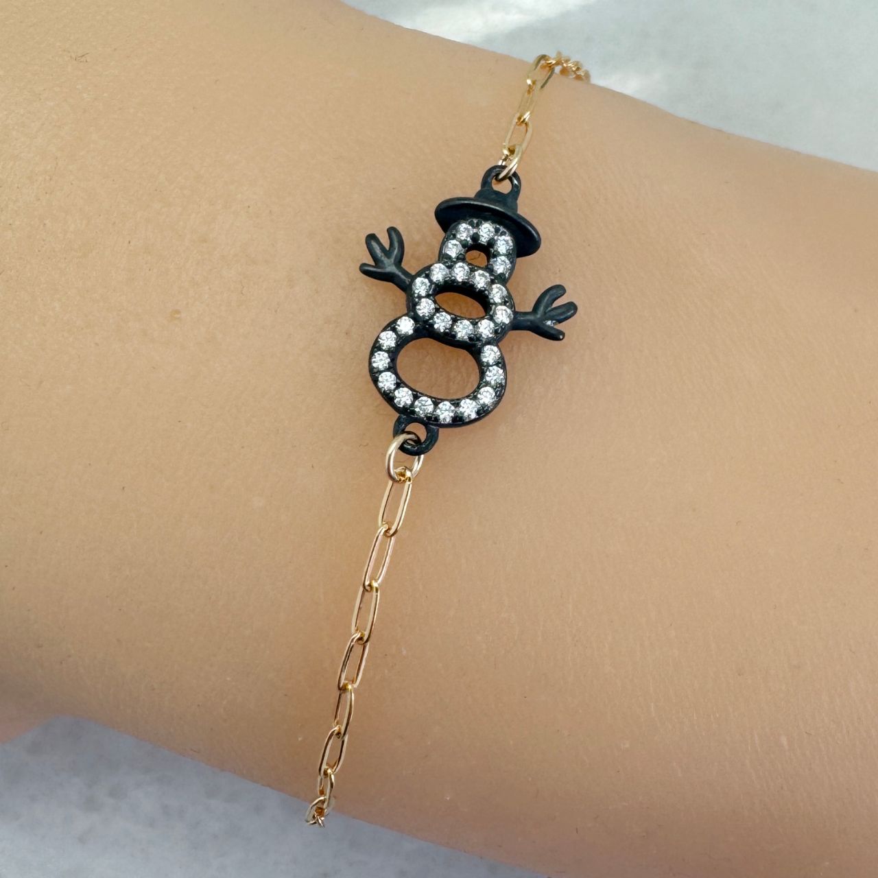 Style: Rectangle Box Paperclip Chain with CZ Snowman Connector