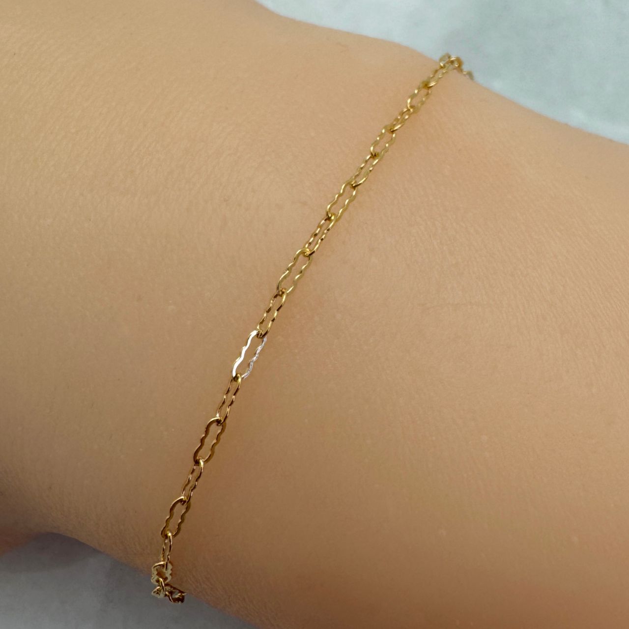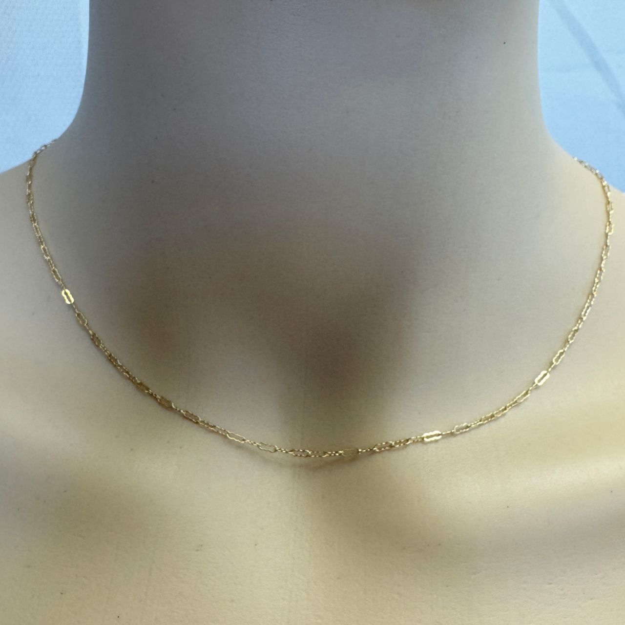 Best Seller Add to compare list 1/20 14k Gold Filled Figaro 8 Cable Chain 4.3mm by 2.3mm (sold per foot) SKU : 101089GF 3.5mm by 2.3mm 12 links per inch Log In for Wholesale Prices