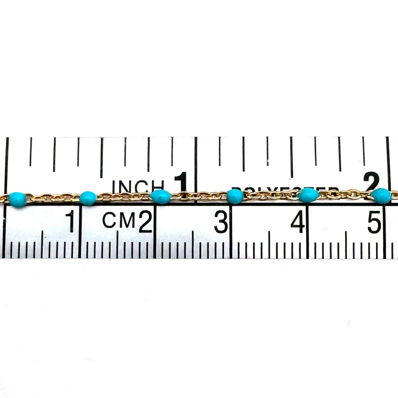 Custom wishlist OK Add to wishlist Add to compare list 925 Sterling Silver Cable Chain with Turquoise Enamel Link - Bulk Chain by the Foot SKU : 101114 Cable chain 2mm long by 1.2mm wide links 18 links per inch, including 3 enamel From $13.28 Add to cart