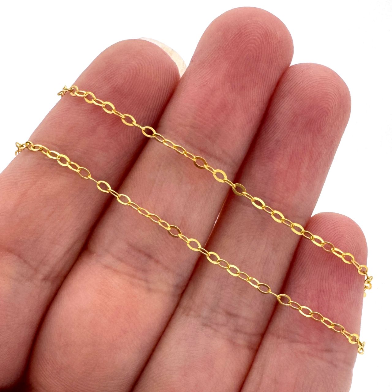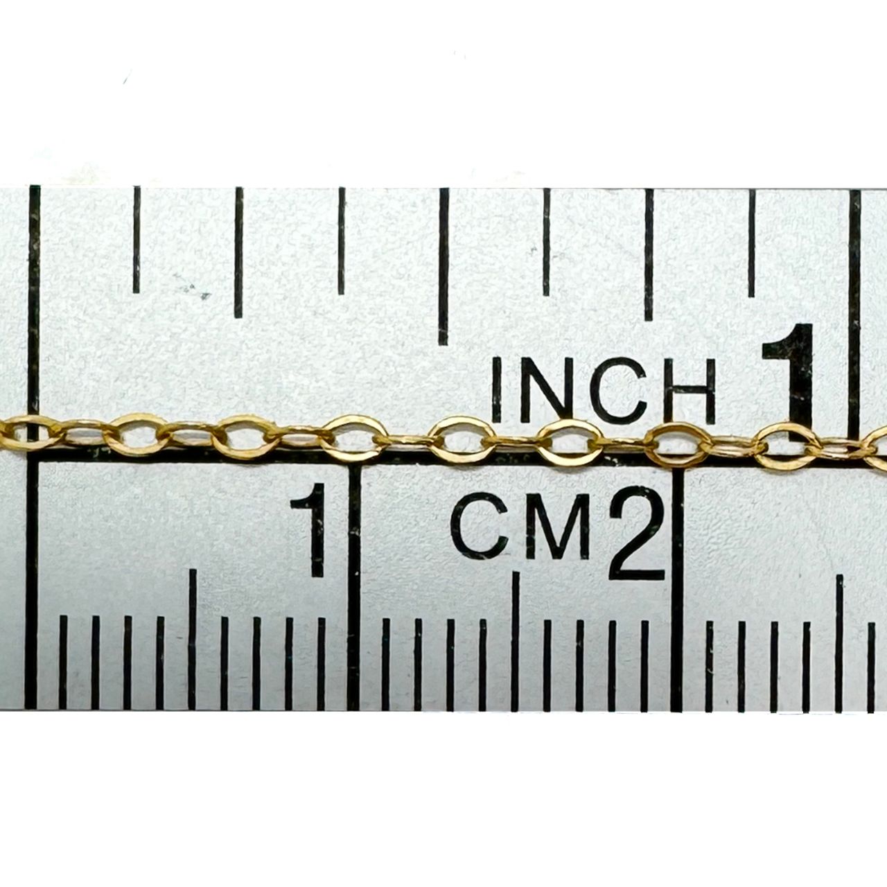 Custom wishlist OK Add to wishlist Add to compare list Gold Over Sterling Silver Chain - Flat Cable Bulk Chain 2x2.5mm (sold per foot) SKU : 101022-VM OD-2.5mm long by 2mm wide 14 links per inch From $3.60 Add to cart