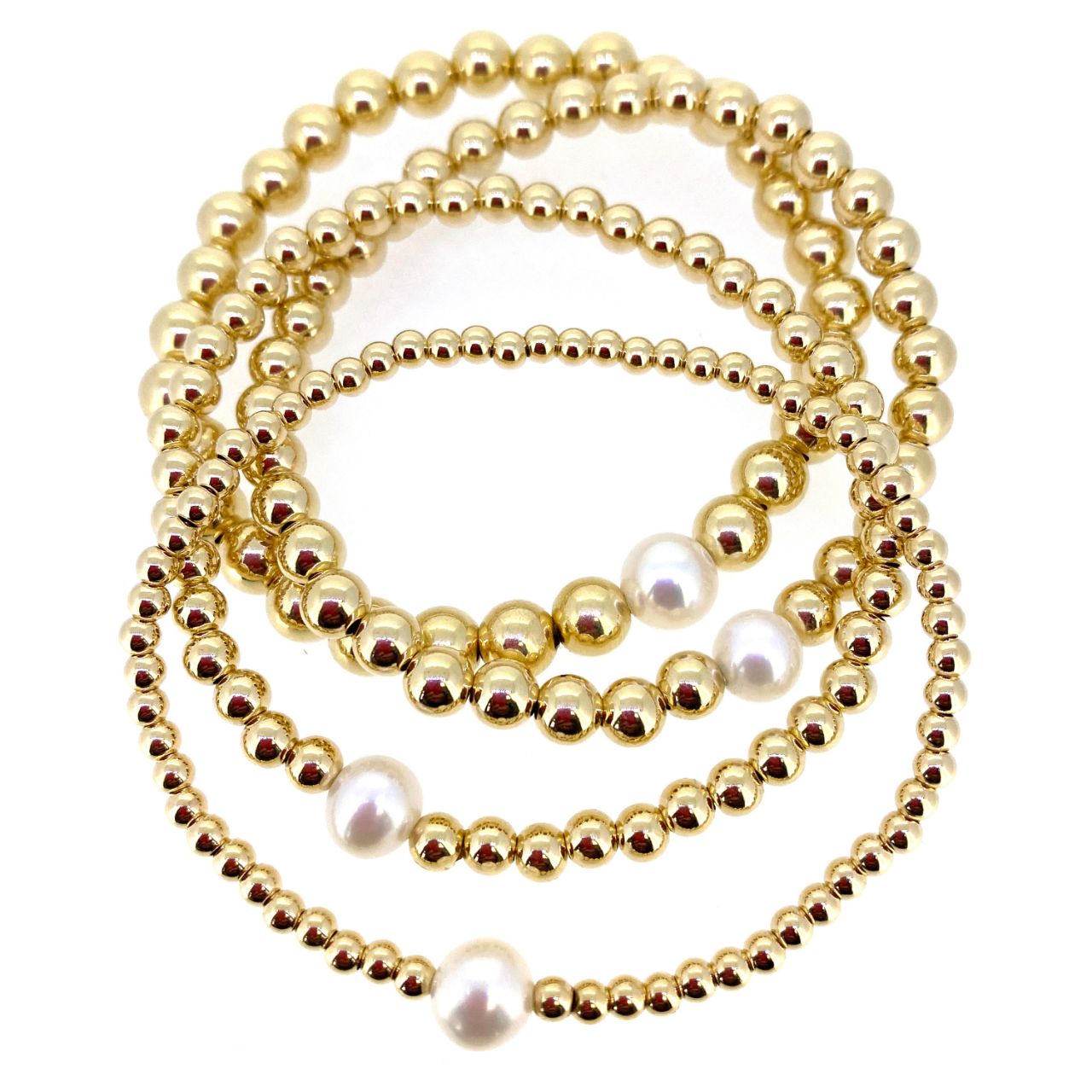 Custom wishlist OK Add to wishlist Add to compare list 1/20 14K Gold Filled Smooth Beaded Stretchy Bracelet with Freshwater Pearls - 6.5" SKU : 721003GF Currently Available bead size: 3mm, 4mm ,5mm and 6mm $28.00 Add to cart