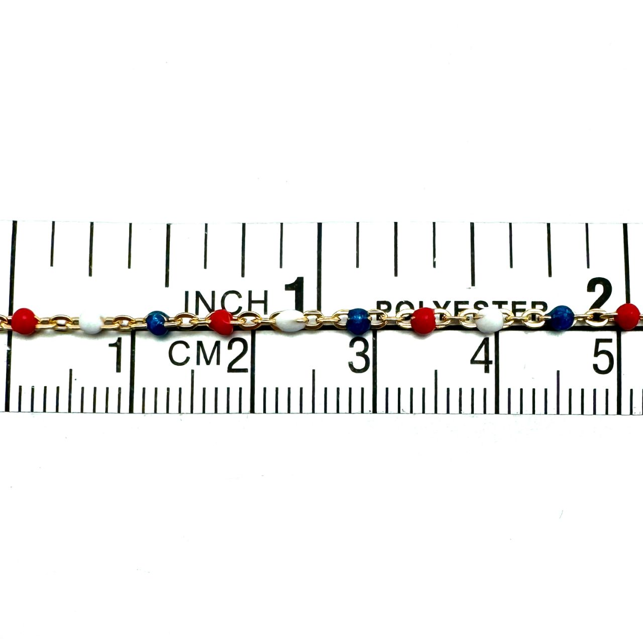 Custom wishlist OK Add to wishlist Add to compare list 1/20 14k Gold Filled Finished Adjustable Enamel Chain Jewelry - Cable Chain with Red, White, and Blue Enamel SKU : 650116GF One Size Fits Most Bracelet, Anklet, Or Necklace $15.00 Add to cart