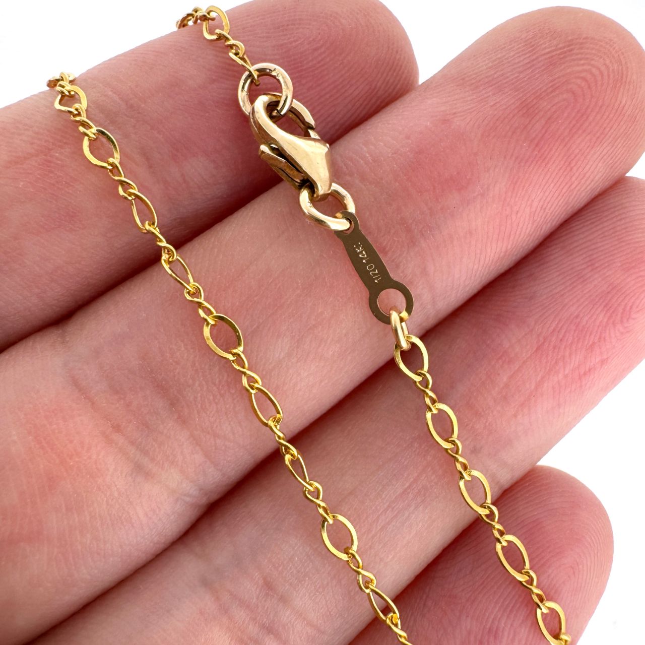 Custom wishlist OK Add to wishlist Add to compare list 1/20 14K Gold Filled Bulk Rolo Chain - 1.8mm (sold per foot) SKU : 101099GF 1.8mm About 22 links per inch From $15.27 Add to cart
