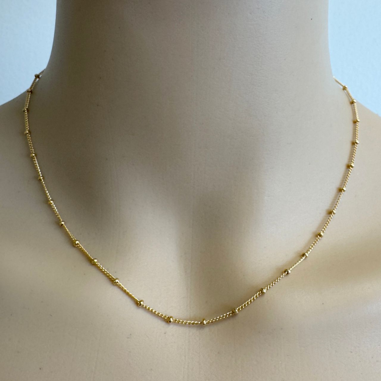 Custom wishlist OK Add to wishlist Add to compare list 1/20 Gold Filled Finished Chain - 1.1mm Rolo Chain SKU : 601016-GF 16", 18" and 20" Machine Made with tag. From $11.00 Add to cart