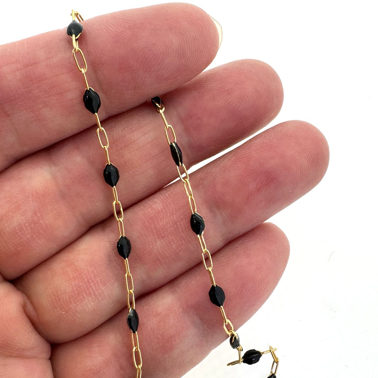 Custom wishlist OK Add to wishlist Add to compare list 925 Sterling Silver Long Box -1+3 PaperClip Enamel Chain (Black Color)-4mm by 1.6mm(Sold per foot) SKU : 101096 Paperclip chain 4mm long by 1.6mm wide 7 links per inch From $8.50 Add to cart