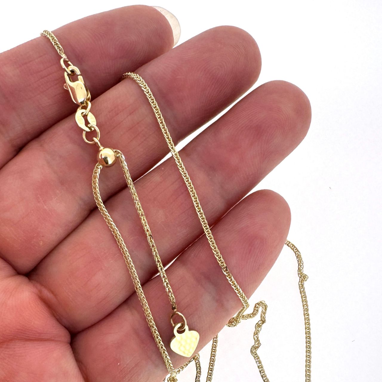 Custom wishlist OK Add to wishlist Add to compare list 14K Yellow Gold Necklace-Square Diamond Cut Wheat Chain-16", 18" or 20" SKU : 601324 0.8mm wheat chain- about 1.51grams -16", 1.73 grams - 18", about 1.85 grams -20" From $197.45 Add to cart