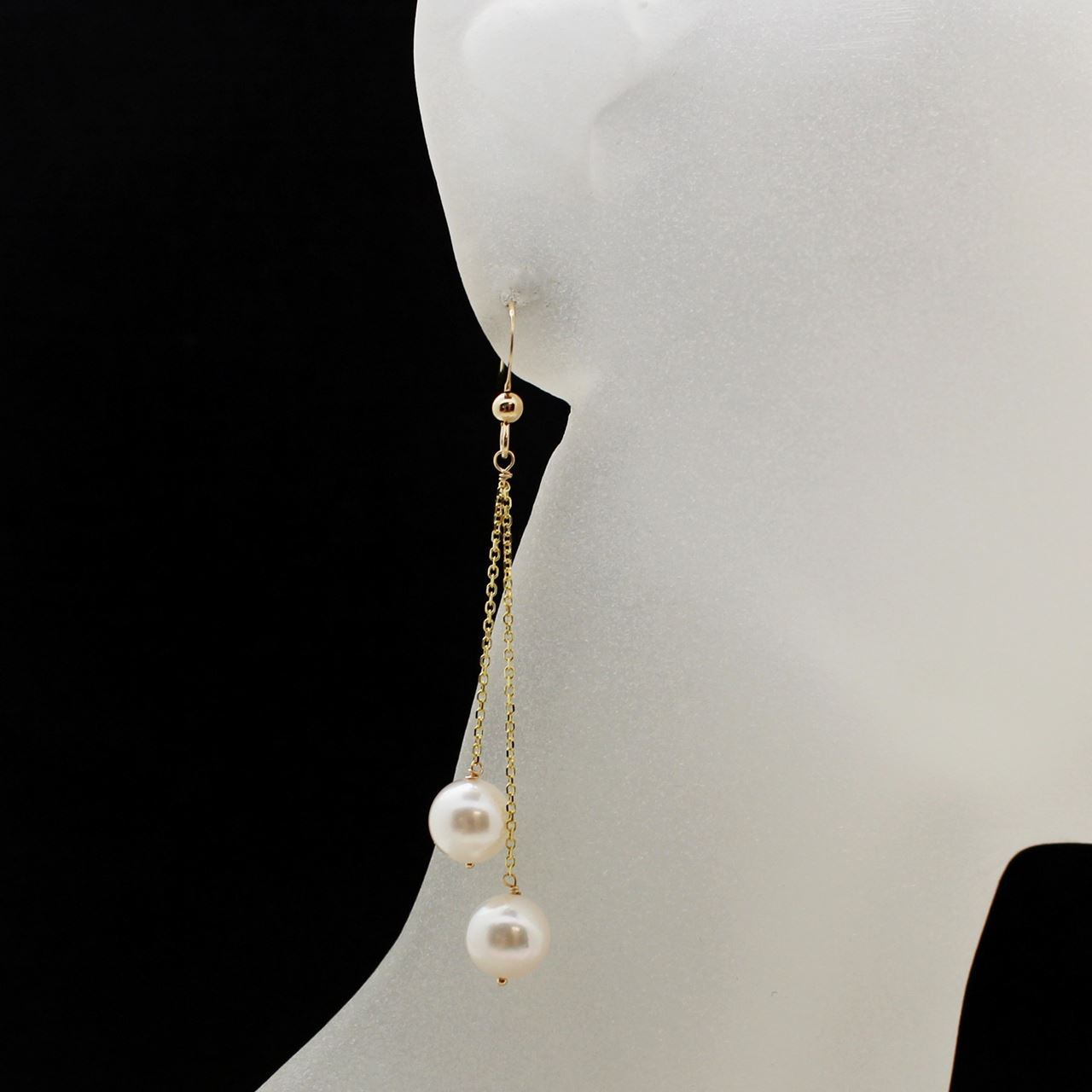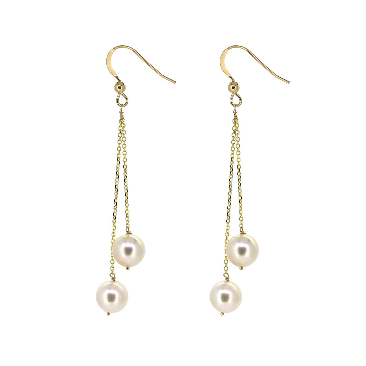 Quantity: One pairStyle: Dangle Pearl EarringsDrop Length: 52mmPearls: 7.5-8mm Akoya PearlsMaterial: 14K Yellow Gold