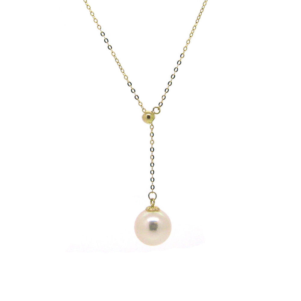 Necklace Type: Single pearl pendant with sliding beadMetal: 18K solid yellow gold-Adjustable up to 17.5 inchesPearls size: 8.7mm Akoya pearl with pink overtonePearl Grade-AAAFlawless on at least 95% of pearl's surfaceOnly 5% of pearl's surface may exhibit slight, concentrated imperfectionsNo deep inclusions are allowablePearl should drill or set nearly cleanLuster is high to very high