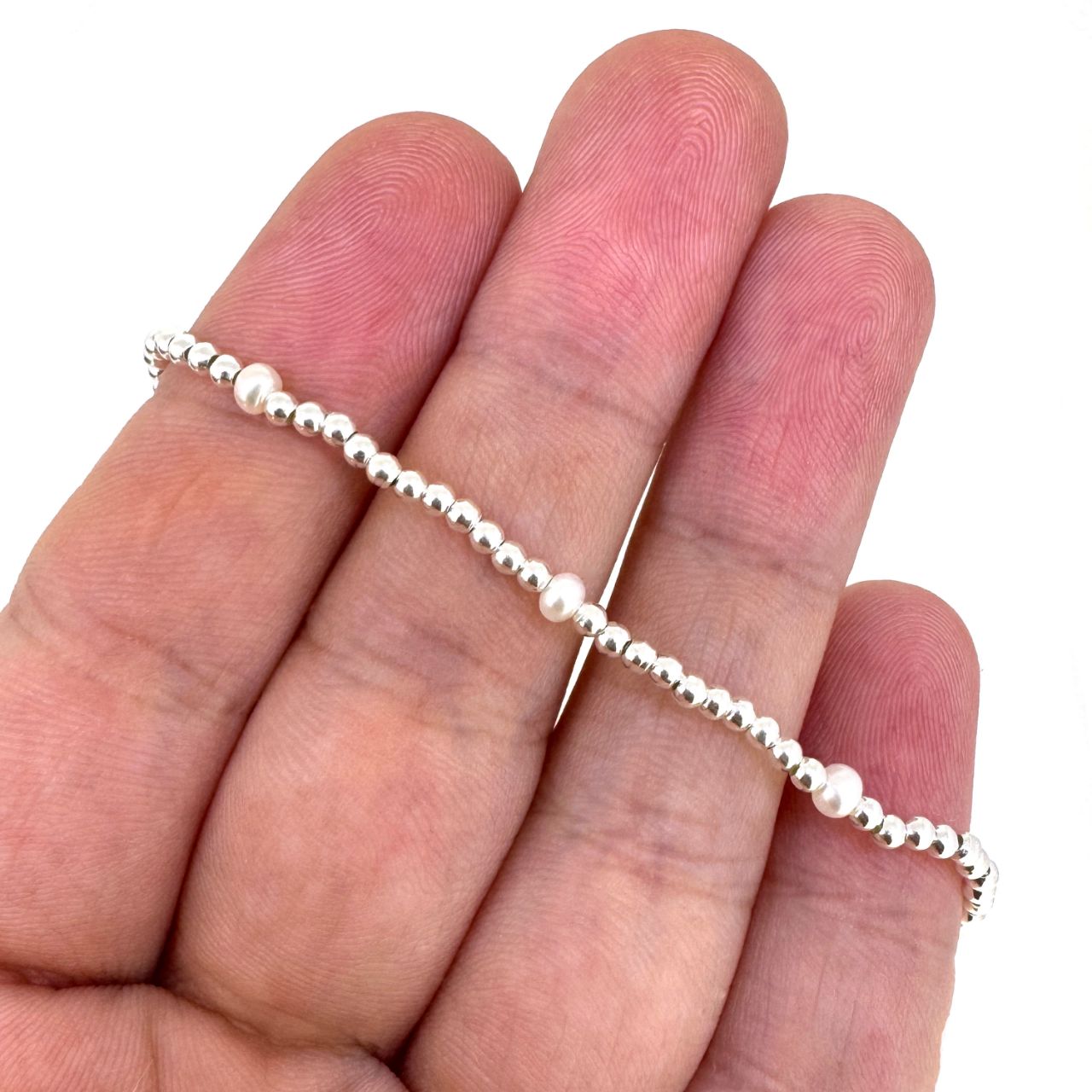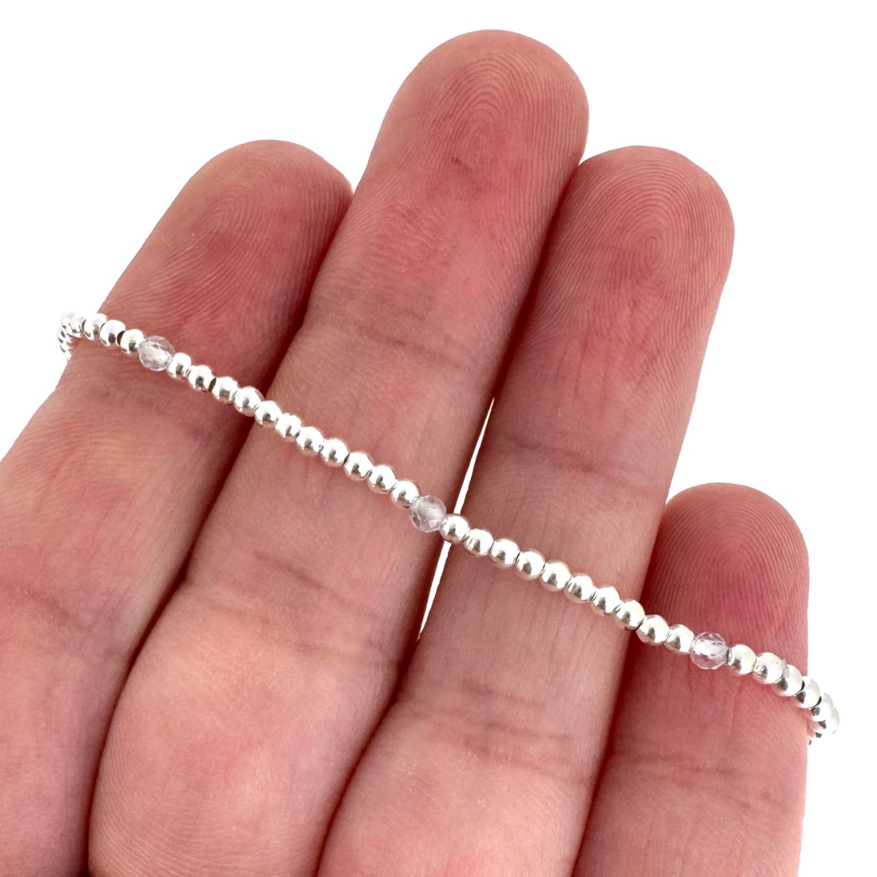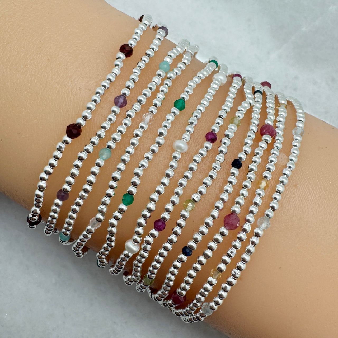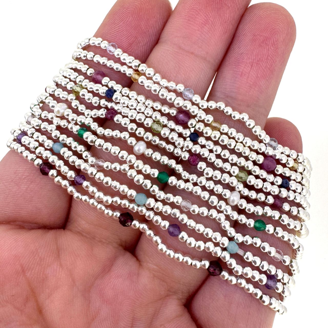 Bead size: 2mm Sterling Silver beads with 2-3mm Natural Gemstone Beads.