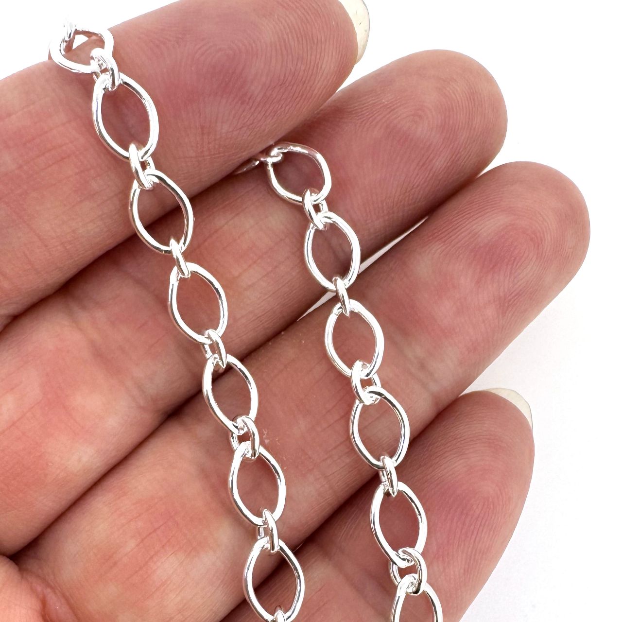 Add to compare list Sterling Silver Bulk Chain - 6x18mm Big Diamond Cut Oval Cable Chain (sold per foot) SKU : 101025 OD-18mm long by 6mm wide 1.5 links per inch Log In for Wholesale Prices