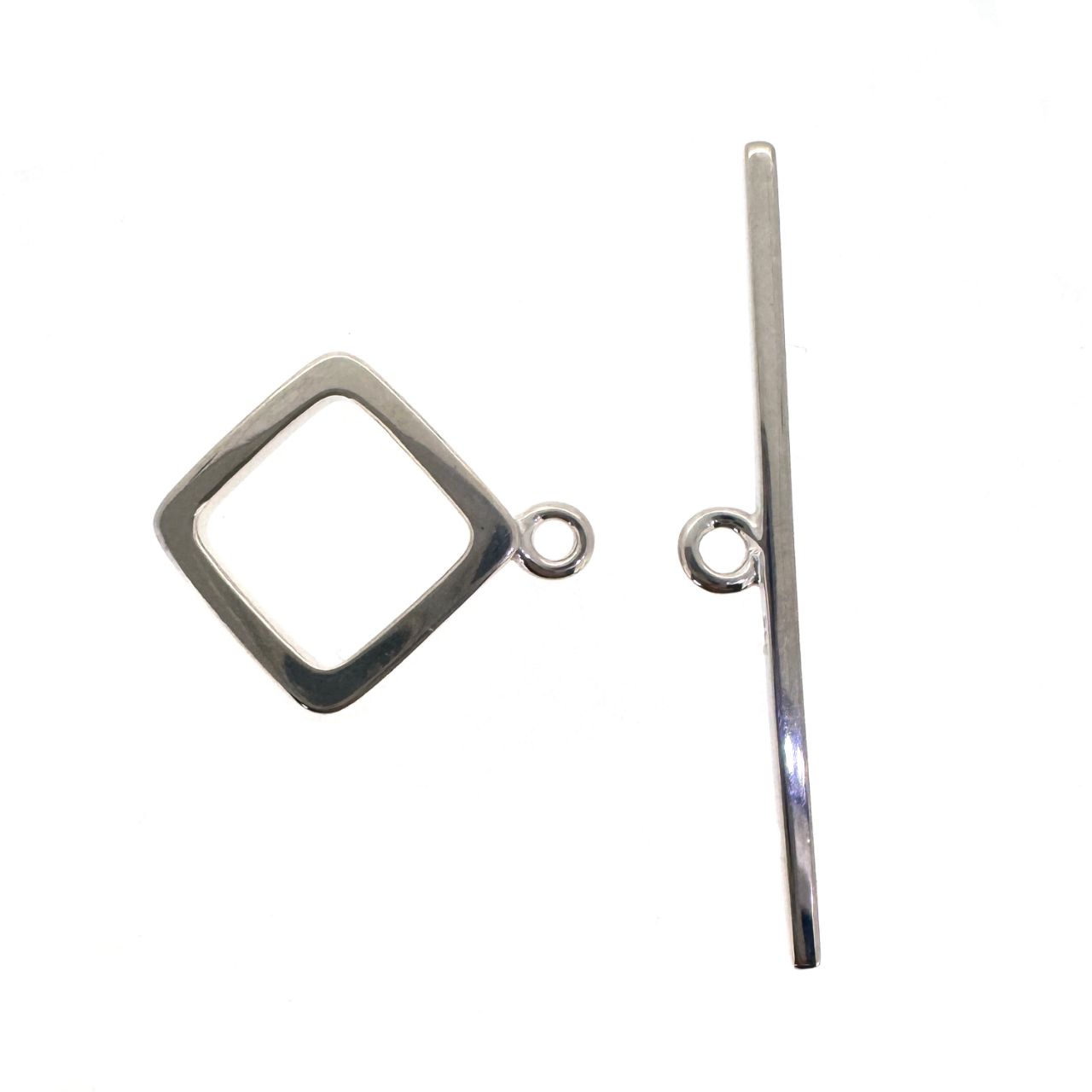 Material: Solid Genuine .925 Sterling SilverShape: Simple Diamond or Square shape toggleMeasurement: Bar is 37mm,1.6mm thickness; Square is approximately 19.5mm with ring - 16mm without, 2mm thickness. Rings are 3.5mm Outer Diameter, 1.5mm Inner.
