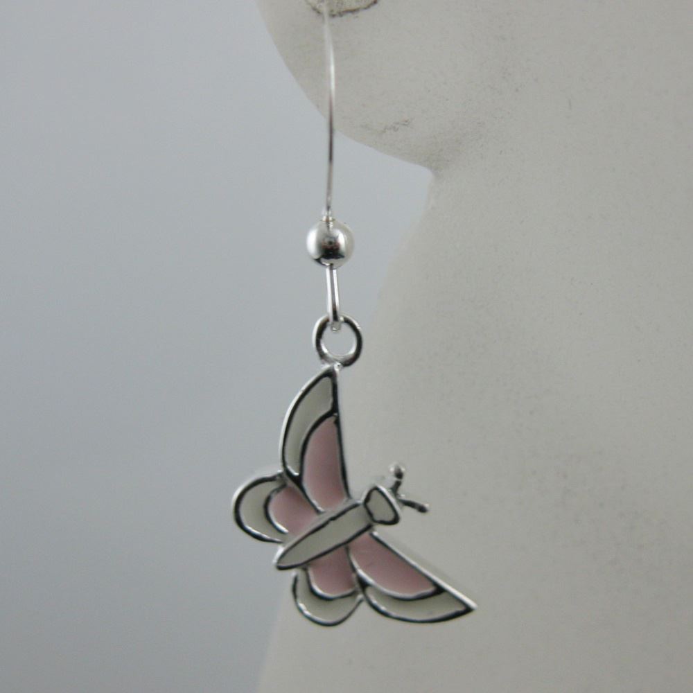925 Sterling Silver Earrings-White and Pink Butterfly Charm