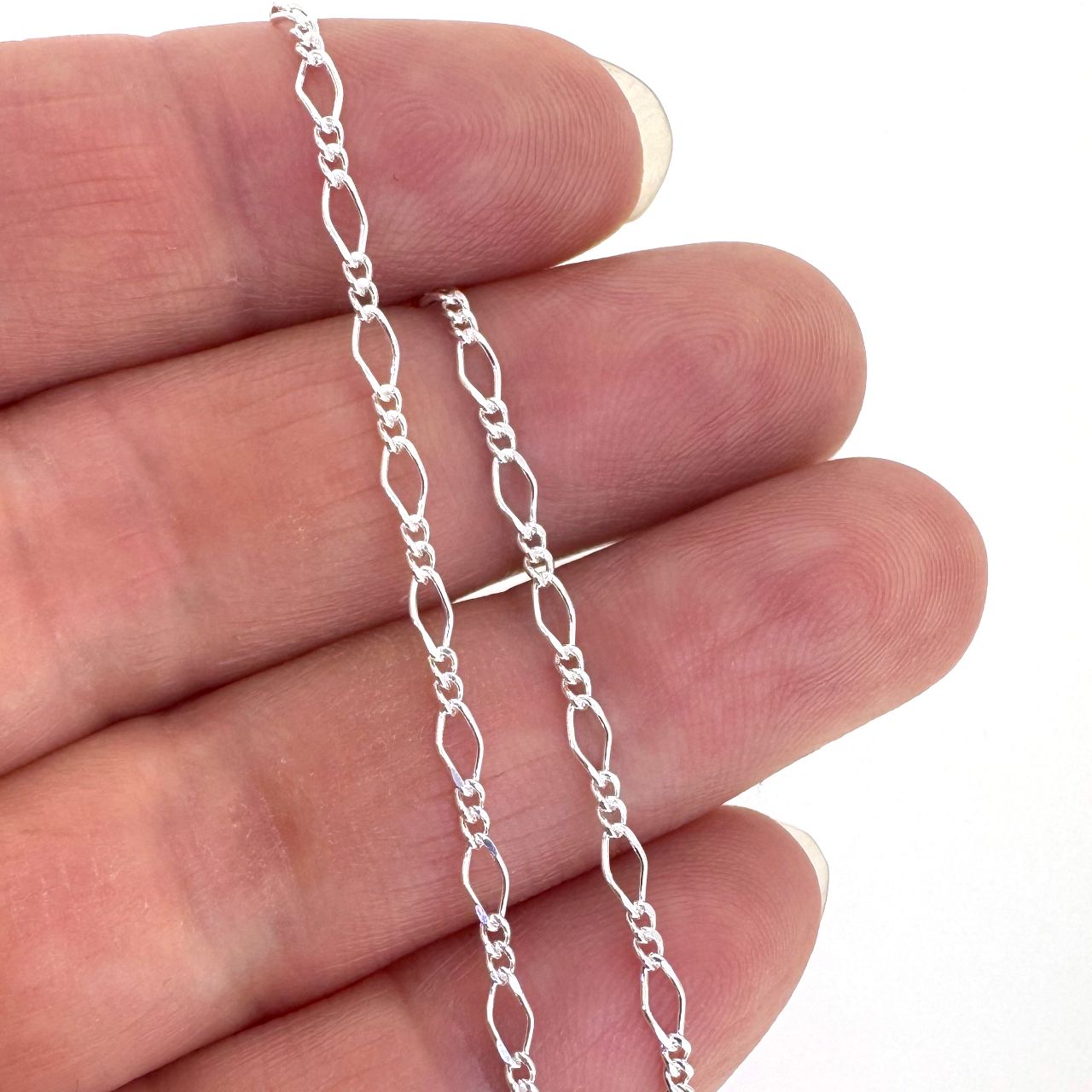 Add to compare list 1/20 14k Gold Filled Figaro 8 Cable Chain 4.3mm by 2.3mm (sold per foot) SKU : 101089GF 12 links per inch--- link :3.5mm by 2.3mm Log In for Wholesale Prices