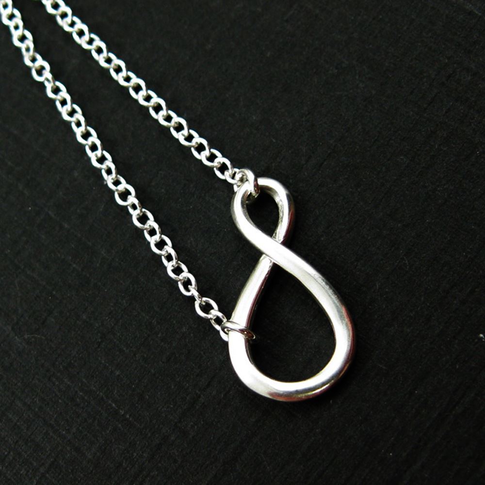Price: per 1 necklaceMaterial: Solid Genuine .925 Sterling Silver. Description: Figure8 or warped infinity, smooth sterling silver. Tiny plain cable link chain.Length: 16 to 24 inches. If you would like a different length please contact the seller. Charm Measurement: 19mm and 10mm wide