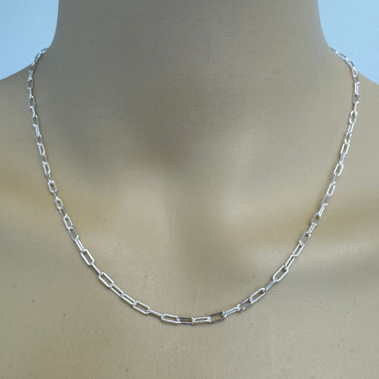 Material: 925 Solid Sterling SilverShape: 1+1 Textured Paperclip Box ChainLength: Contact for Cutstom Sizes!