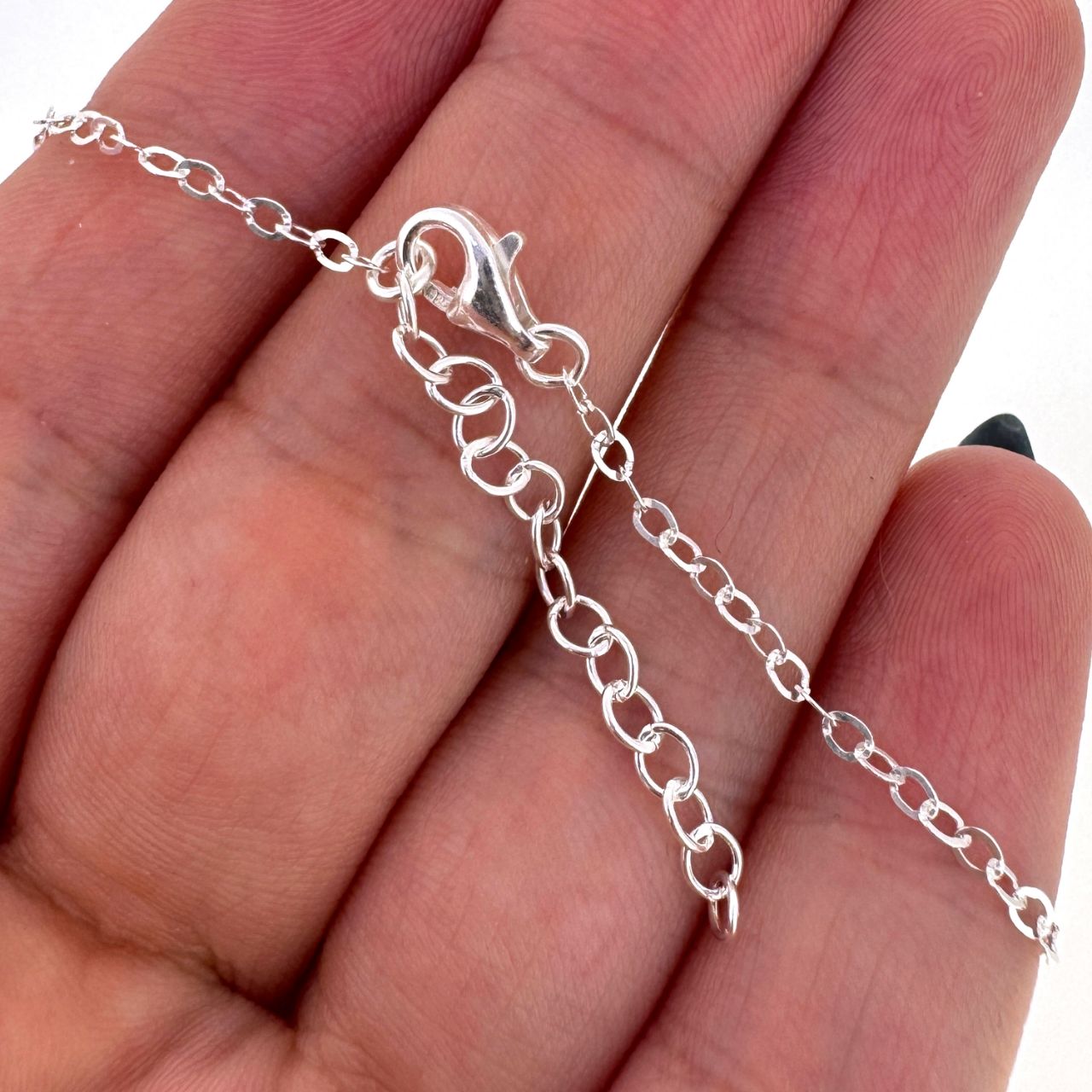 Custom wishlist OK Add to wishlist Add to compare list 925 Sterling Silver Finished Chain - Oval Cable Chain SKU : 601020 Lengths: 7" - 36" Oval link is 2mm x 1.5mm $4.15 Add to cart