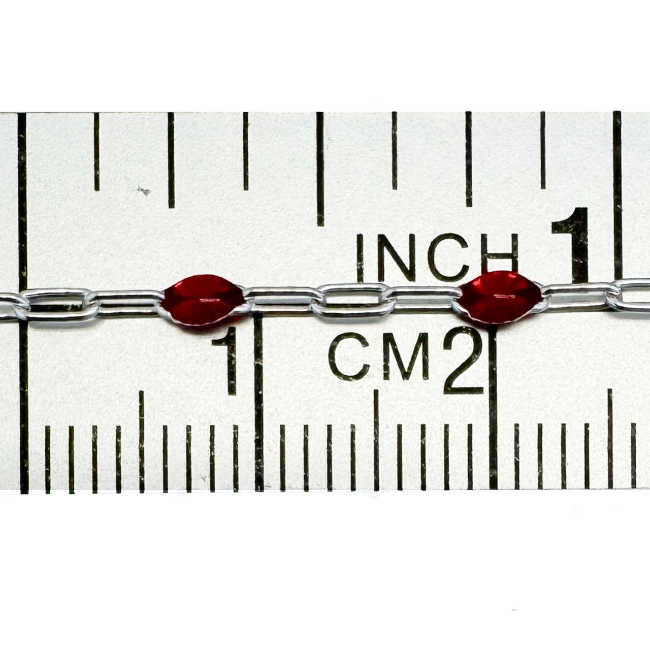 Best Seller Add to compare list 925 Sterling Silver Long Box -1+3 PaperClip Enamel Chain (Ruby Color)-4mm by 1.6mm (Sold per foot) SKU : 101079-RUB July birthstone ruby color. 7 links per inch Log In for Wholesale Prices