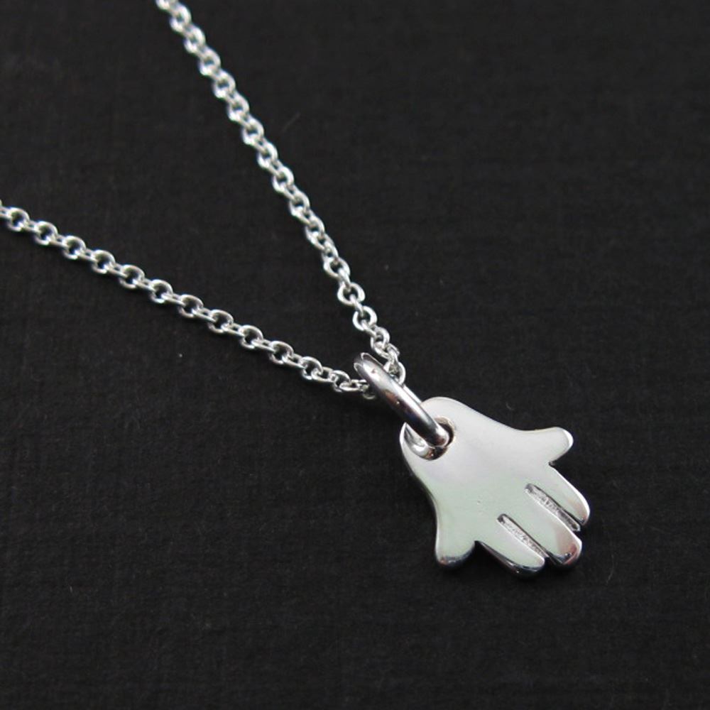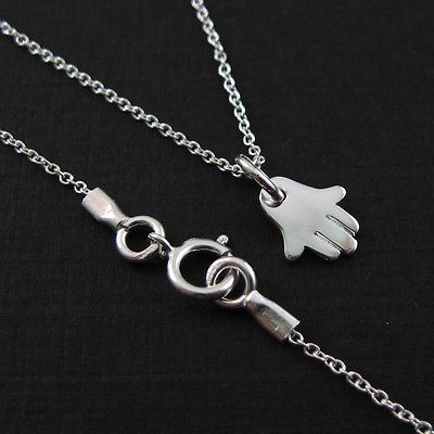 Price: per 1 necklaceMaterial: Solid Genuine .925 Sterling Silver. Description: : Hasma hand charm. "925" mark on the back. Tiny plain cable link chain.Length: 16 to 24 inches. If you would like a different length please contact the seller. Charm Measurement: 25mm long, 20mm long without ring, 8mm wide, 2mm thick.