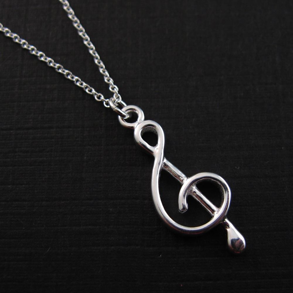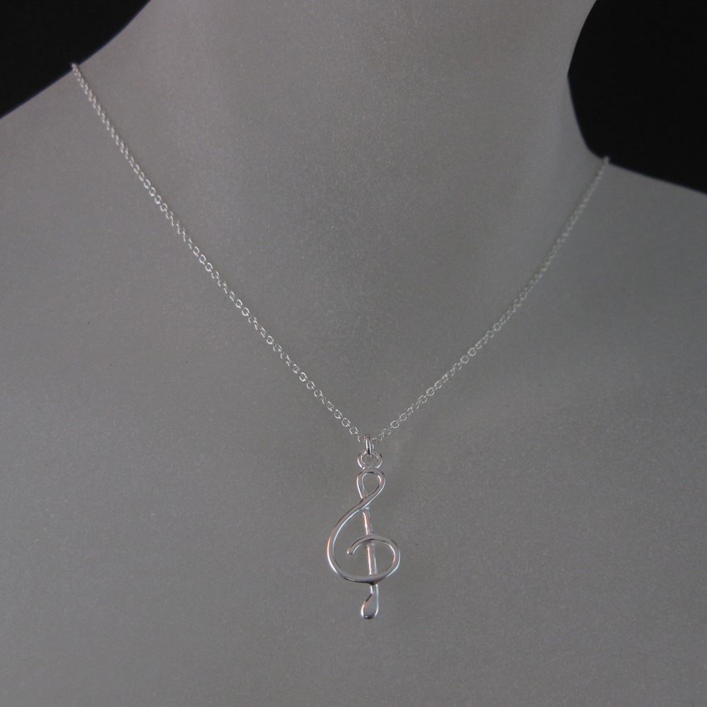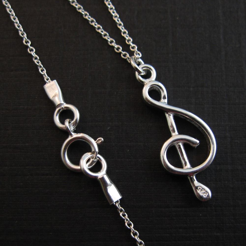 Price: per 1 necklaceMaterial: Solid Genuine .925 Sterling Silver. Description: : Music note (treble clef). "925"mark on back. Tiny plain cable link chain.Length: 16 to 24 inches. If you would like a different length please contact the seller. Charm Measurement: 9mm wide, 23mm long with ring, 2mm thick.