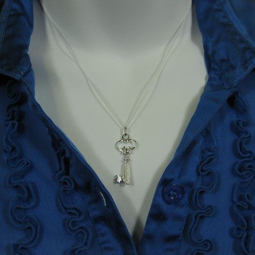 925 Sterling Silver Necklace- Pendant, Large Key Charm ( 16-24")
