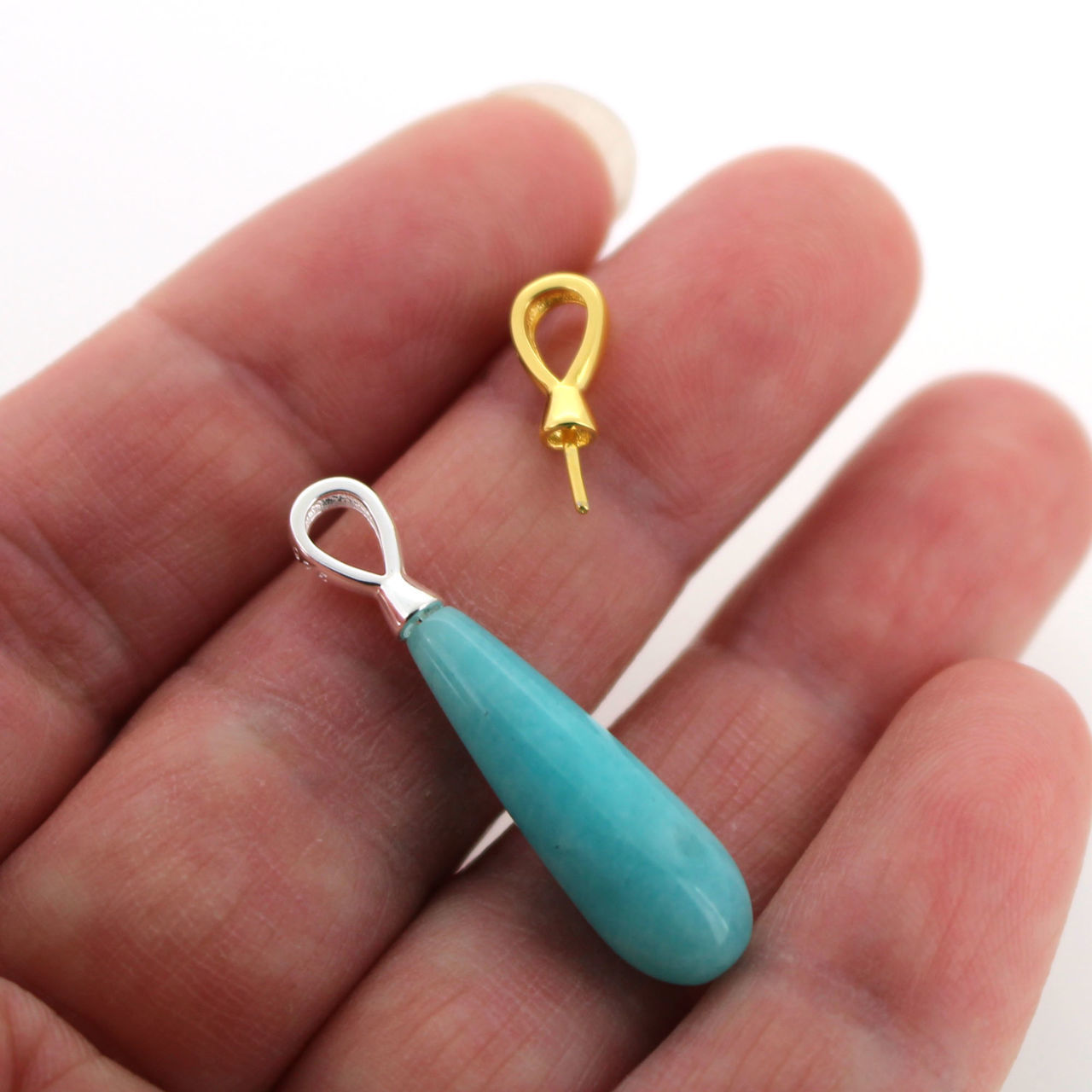 Custom wishlist OK Add to wishlist Add to compare list Sterling Silver Leaf Shape Bead Cap Bail with Post - 10mm (1 pc) SKU : 219218 From $3.79 Add to cart