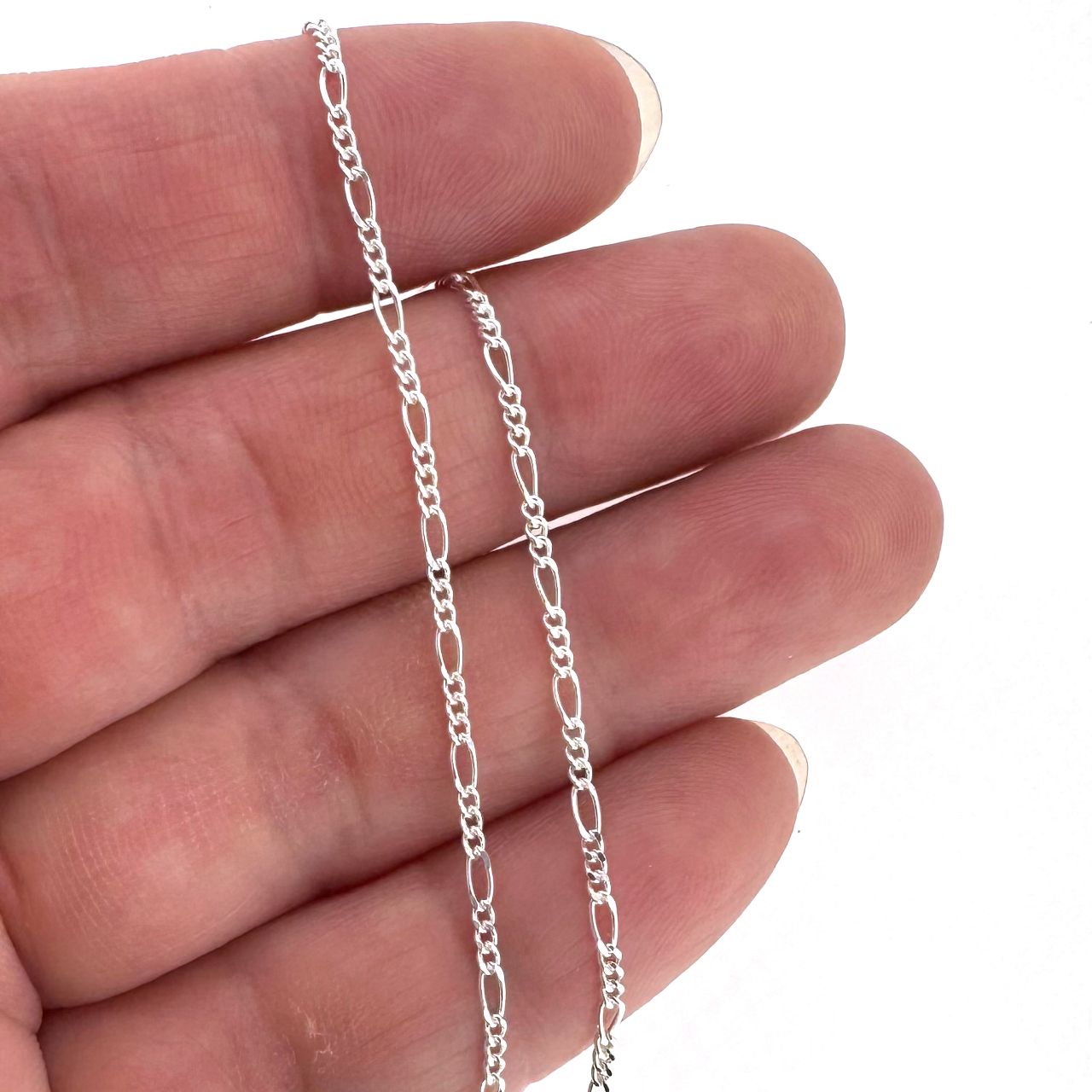Custom wishlist OK Add to wishlist Add to compare list Sterling Silver Necklace Chain-Small Figaro Chain SKU : 601083 Finished Necklaces, Ready to Wear Available length: 7"-36". $4.23 Add to cart