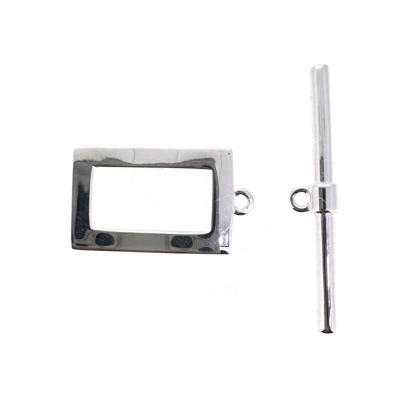 Material: Solid Genuine .925 Sterling Silver Shape: Wavy Rectangle shape toggle claspMeasurement: Bar is 26mm,2mm thickness. Rectangle is approximately 10 *17.7mm with ring - 15.6mm without. Rings are 2.7mm Outer Diameter, 1.2mm Inner.