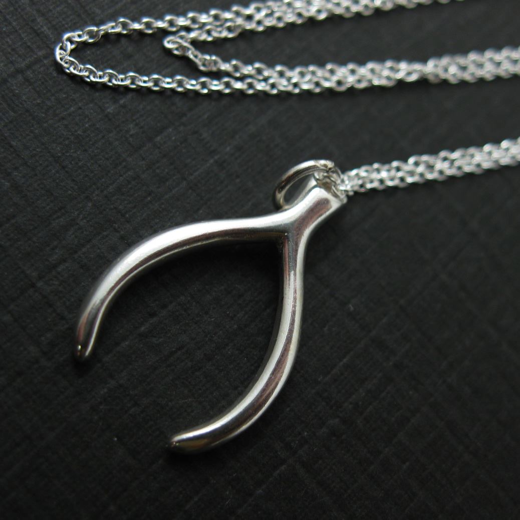 Price: per 1 necklaceMaterial: Solid Genuine .925 Sterling Silver. Description: : Wishbone shape charm. Tiny plain cable link chain.Length: 16 to 24 inches. If you would like a different length please contact the seller. Charm Measurement: 24mm long, 20mm long without ring, 13mm wide, 1mm thick.