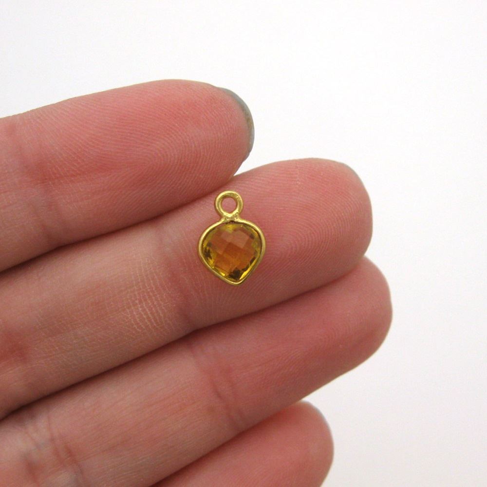 Add to compare list Gold Over Sterling Silver Bezel Charm Pendant - 10x7mm Tiny Heart Shape - Crystal Quartz - April Birthstone SKU : 201109-CQR Log In for Wholesale Prices