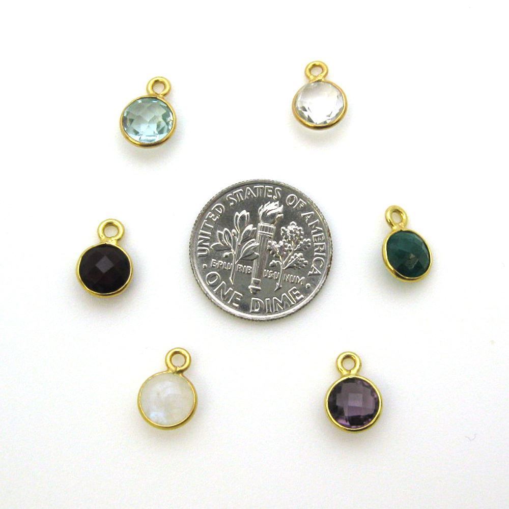 Custom wishlist OK Add to wishlist Add to compare list Gold Over Sterling Silver Bezel Charm Pendant - 7mm Tiny Circle Shape - Aqua Quartz - March Birthstone SKU : 201108-AQR From $1.26 Add to cart