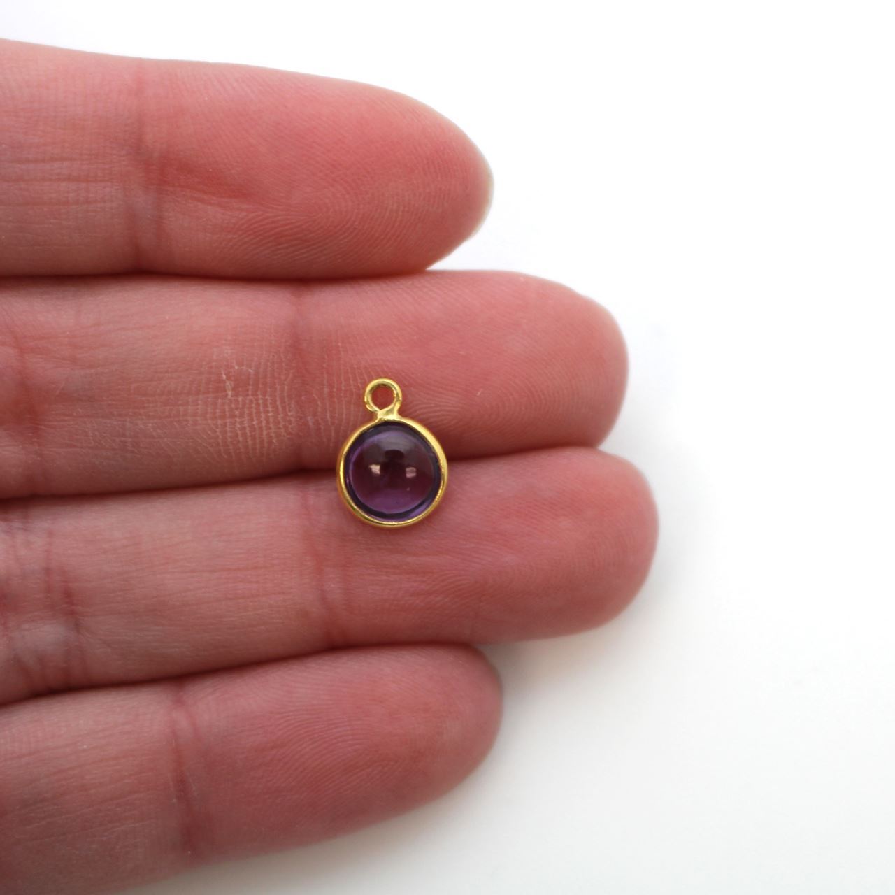 Custom wishlist OK Add to wishlist Add to compare list Bezel Charm Pendant - Gold Plated Sterling Silver Charm - Natural Green Onyx - Tiny Round Shape - May Birthstone SKU : 201127-GON $3.70 Add to cart