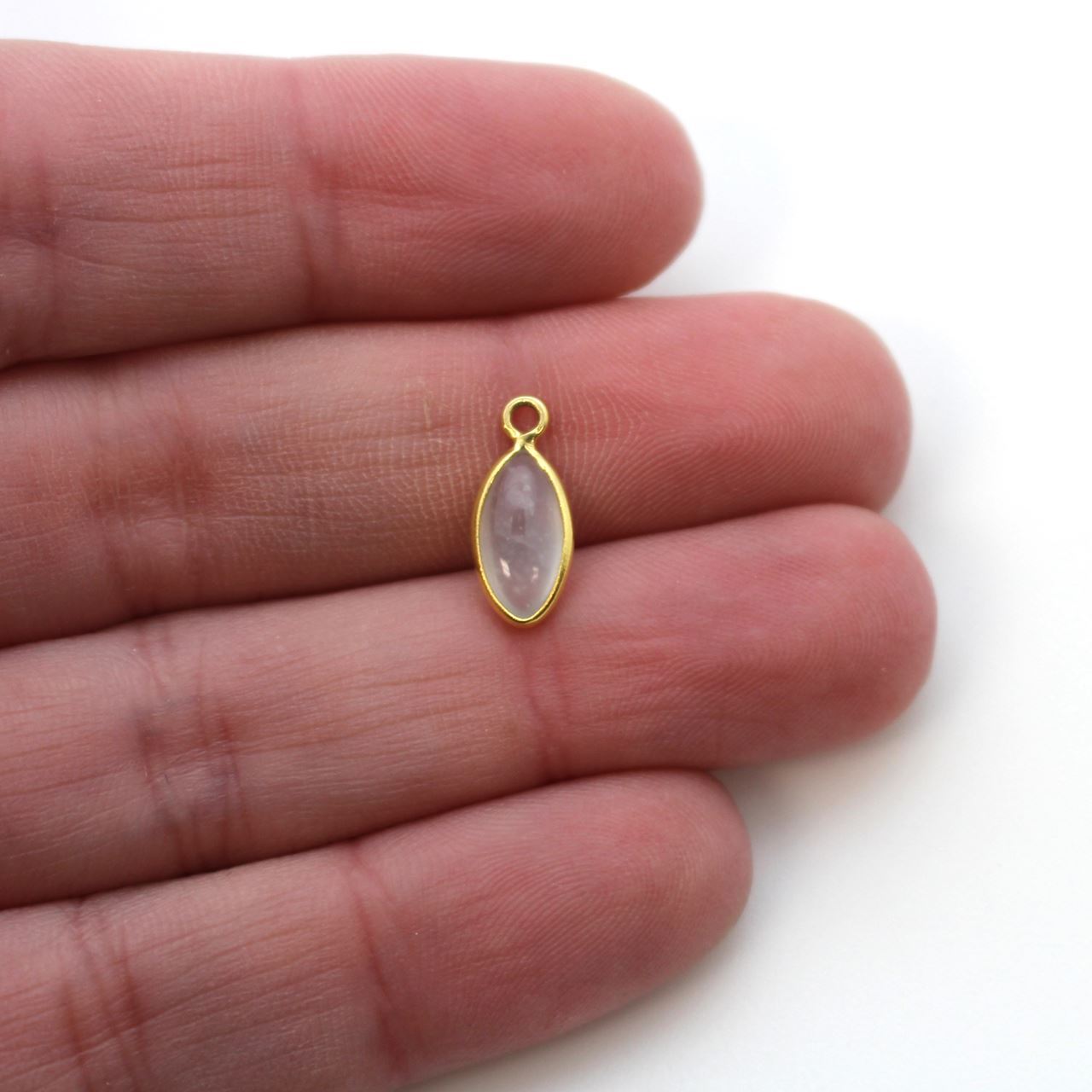 Custom wishlist OK Add to wishlist Add to compare list Bezel Charm Pendant - Gold Plated Sterling Silver Charm - Natural Labradorite - 6x13mm Tiny Marquise Shape SKU : 201121-LAB $3.95 Add to cart