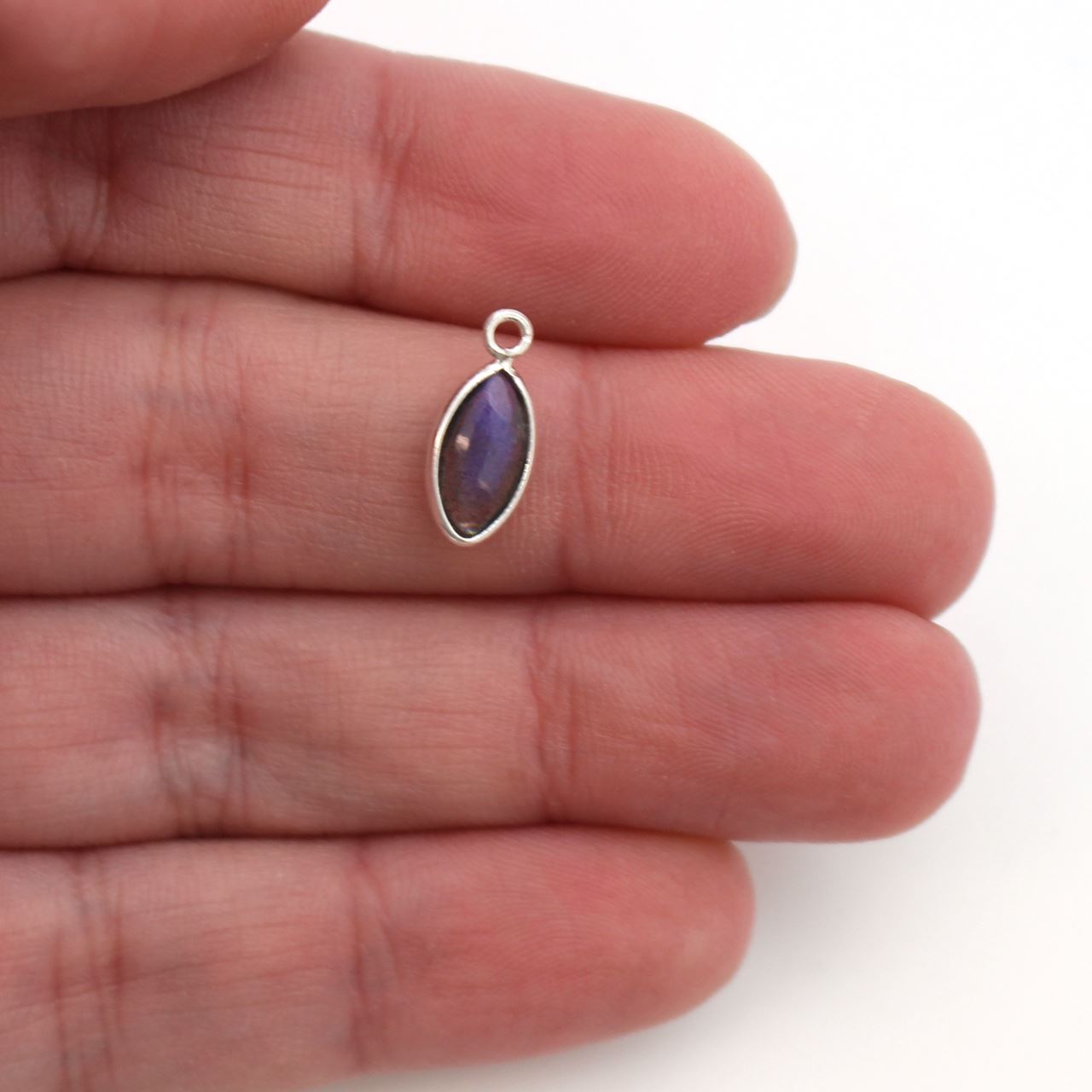 Custom wishlist OK Add to wishlist Add to compare list Bezel Charm Pendant - Sterling Silver Charm - Natural Labradorite - Tiny Teardrop Shape SKU : 201128-LAB $3.95 Add to cart