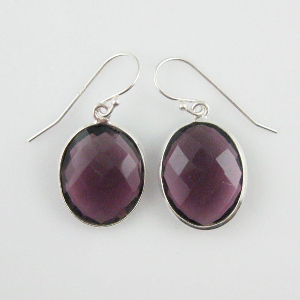 Bezel Gem Oval Pendant Necklace & Earrings - Sterling Silver- Amethsyt (16-24")