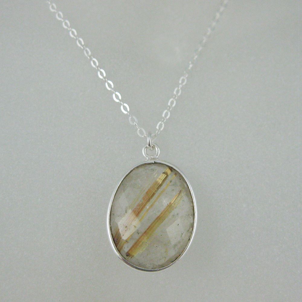 Stone: Gold Rutilated QuartzStone Shape: Faceted oval shape on both sides. Pendant Measurement: 21mm long, stone is 14x18mm.