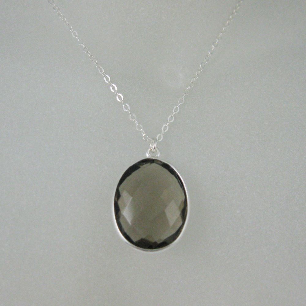Stone: Smokey QuartzStone Shape: Faceted oval shape on both sides. Pendant Measurement: 21mm long, stone is 14x18mm.