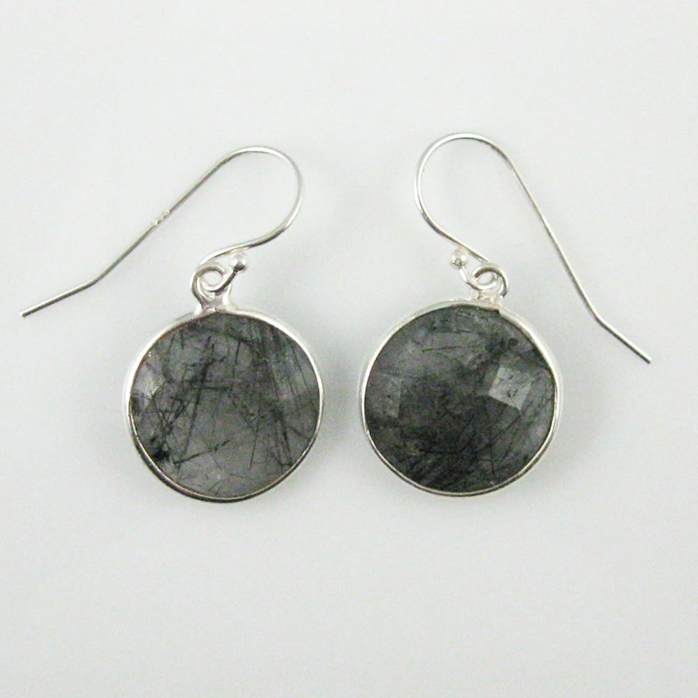 Stone: Black Rutilated Quartz Stone Shape: Faceted coin shape on both sides. Pendant Measurement: 19mm long, stone is 14mm