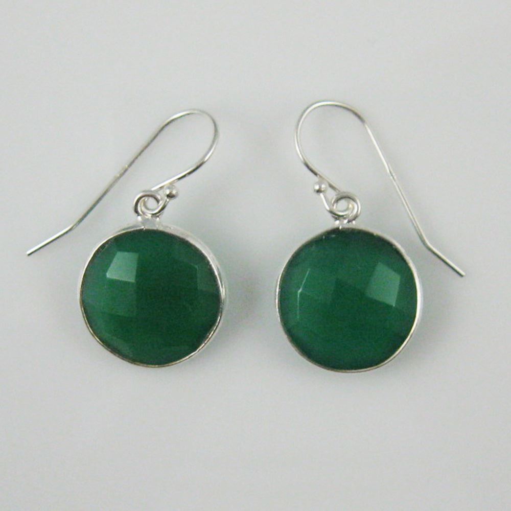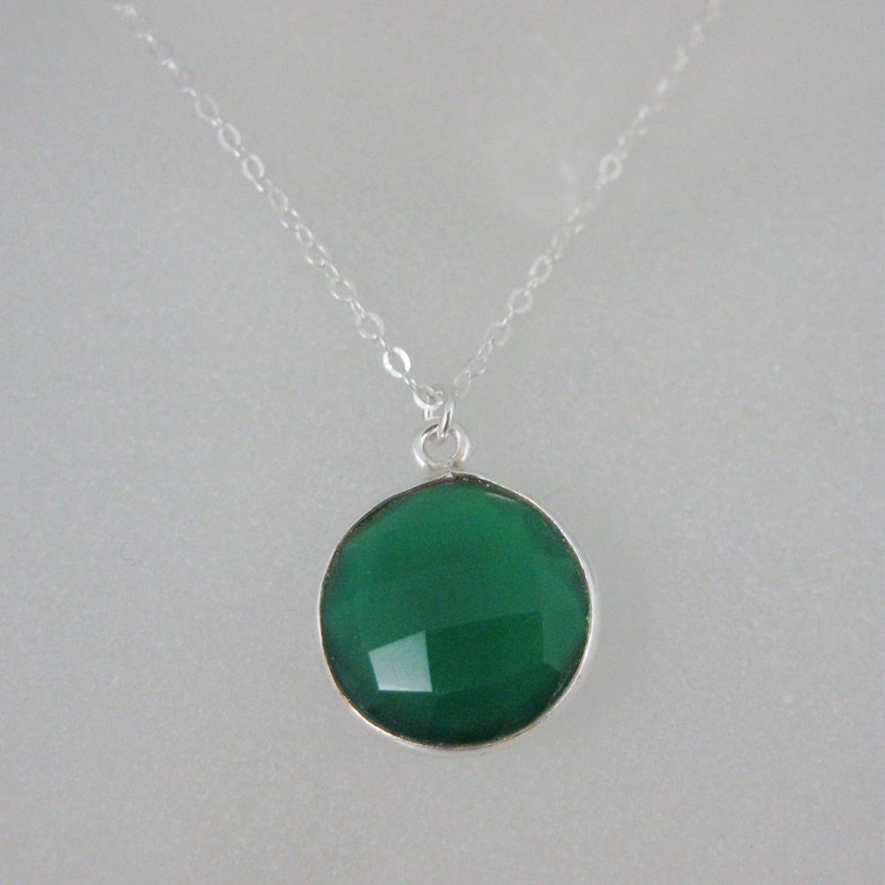 Stone: Green OnyxStone Shape: Faceted coin shape on both sides. Pendant Measurement: 19mm long, stone is 14mm.