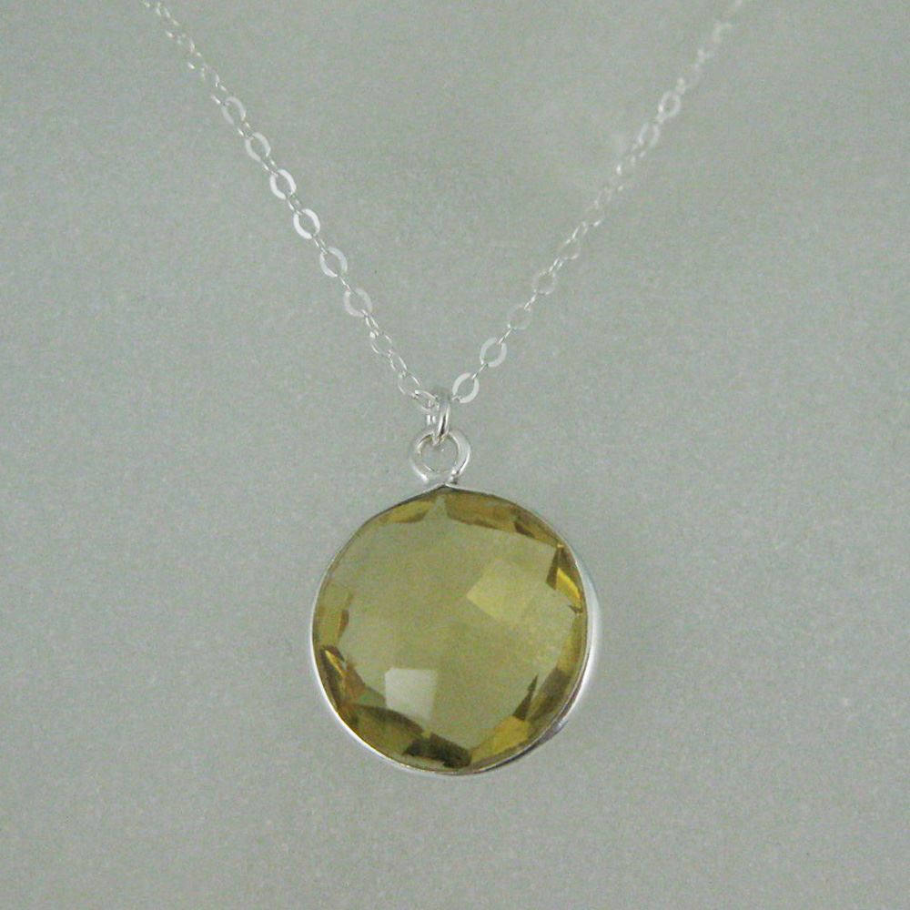 Stone: Lemon QuartzStone Shape: Faceted coin shape on both sides. Pendant Measurement: 19mm long, stone is 14mm.