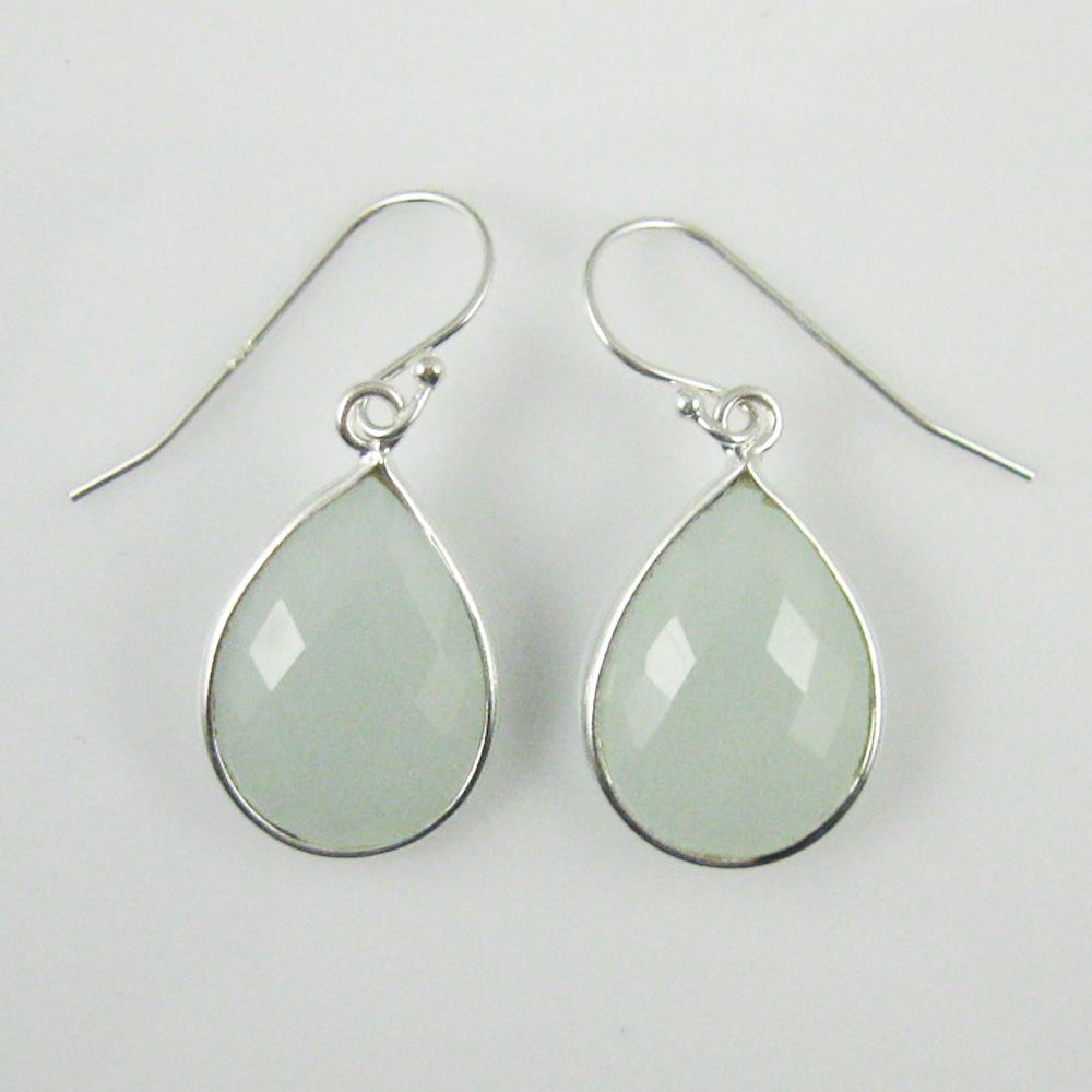Bezel Gem Tear Pendant Necklace & Earrings - Sterling Silver-Aqua Chalcedony (16-24")