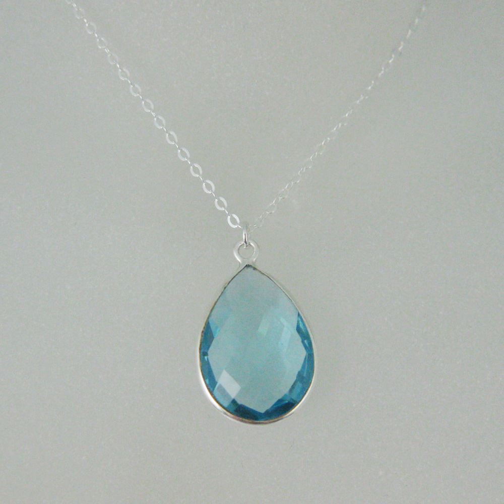 Stone: Blue TopazStone Shape: Faceted tear shape on both sides. Pendant Measurement: 22mm long, stone is 13x18mm.