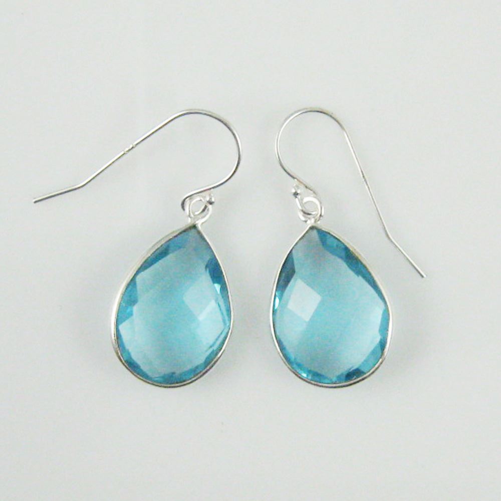 Bezel Gem Tear Pendant Necklace & Earrings - Sterling Silver-Blue Topaz (16-24")