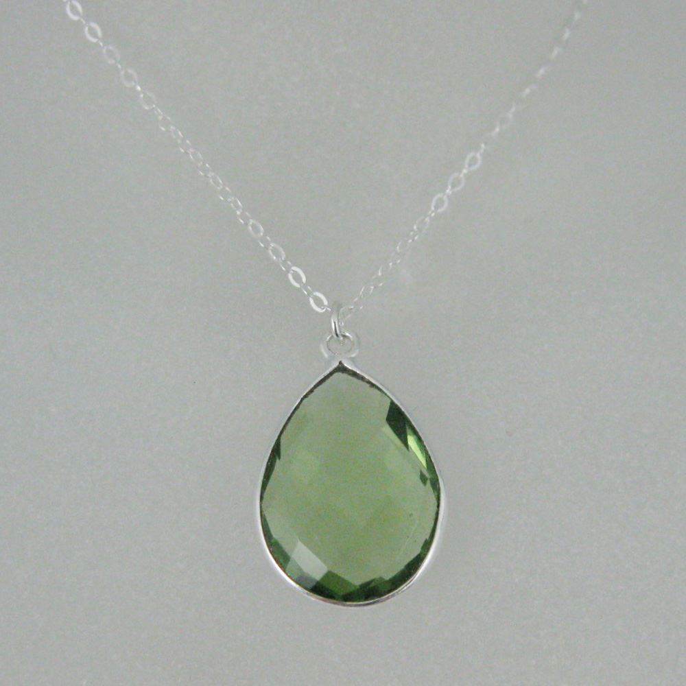 Stone: Green Amethyst QuartzStone Shape: Faceted tear shape on both sides. Pendant Measurement: 22mm long, stone is 13x18mm.