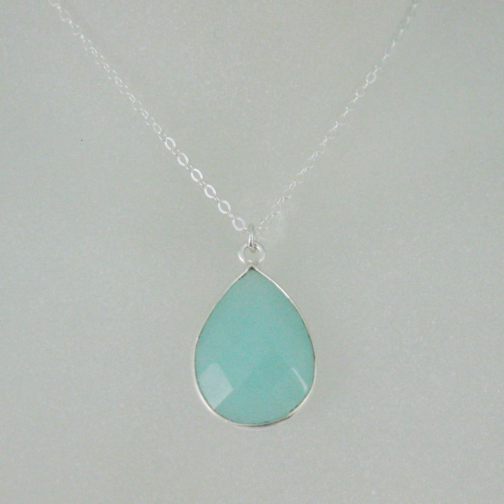 Bezel Gem Tear Pendant Necklace & Earrings - Sterling Silver-Peru Chalcedony (16-24")