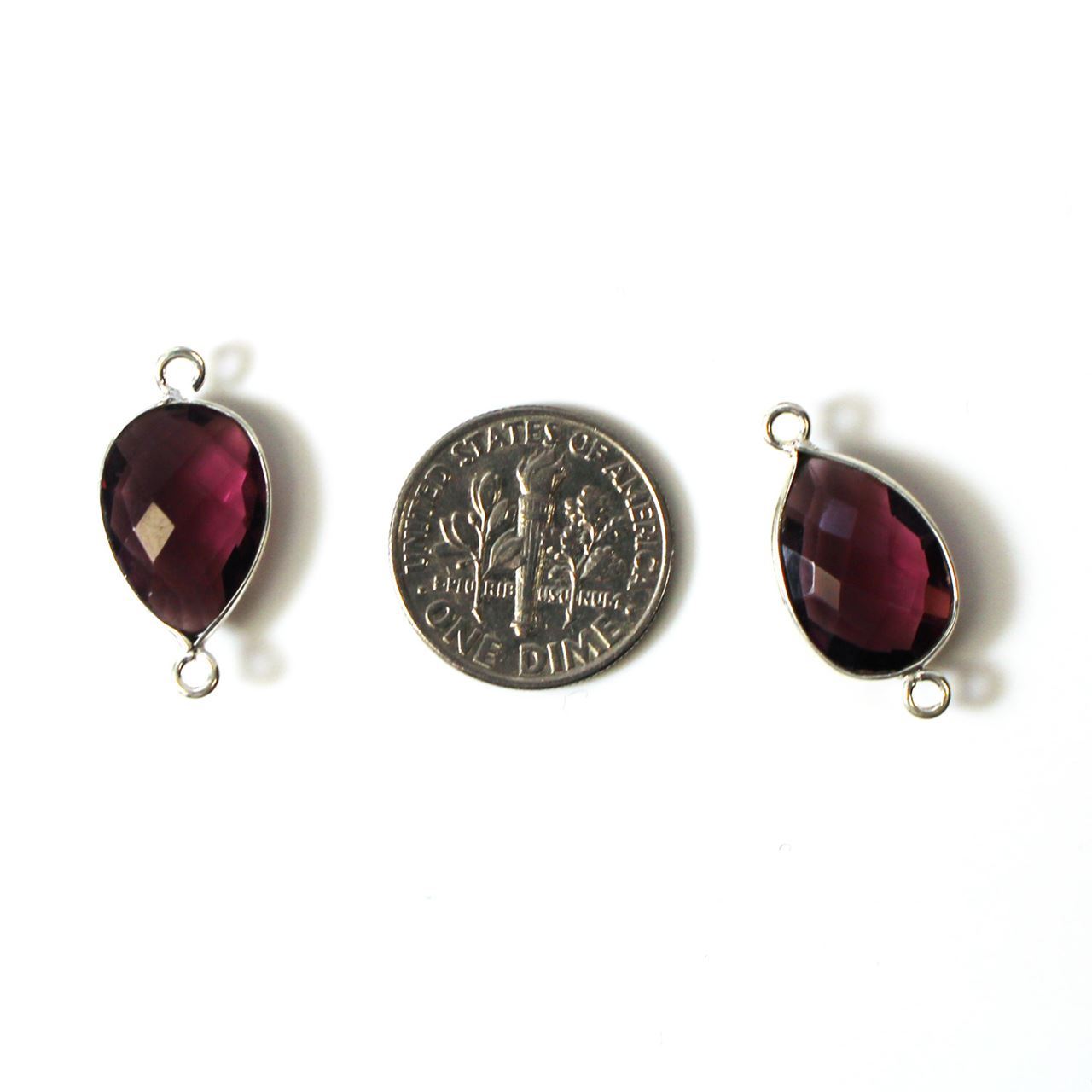 Bezel Gem Links - Sterling Silver - Faceted Pear Shape - Pink Amethyst Quartz