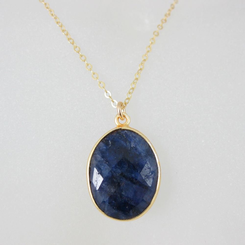 Stone: Blue Sapphire Dyed- Dyed RopadaStone Shape: Faceted oval shape on both sides. Pendant Measurement: 21mm long, stone is 14x18mm.