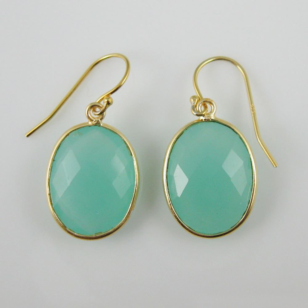 Bezel Gemstone Oval Pendant Necklace & Earrings-Gold Plated-Peru Chalcedony (16-24")