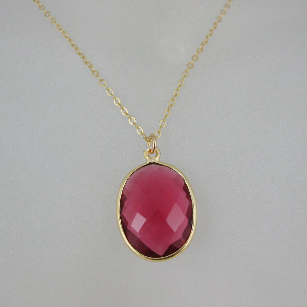 Stone: Rubylite QuartzStone Shape: Faceted oval shape on both sides. Pendant Measurement: 21mm long, stone is 14x18mm.