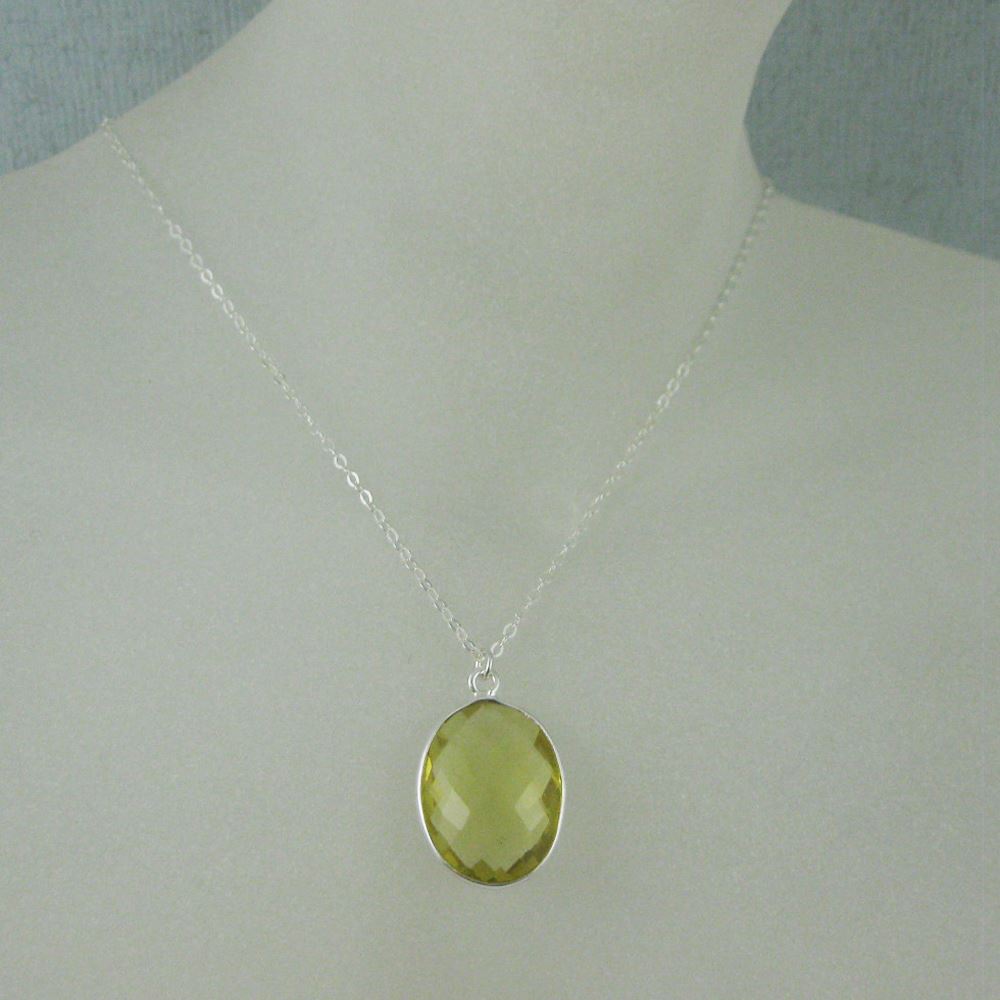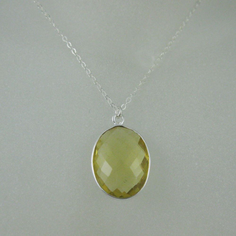 Bezel Gemstone Oval Pendant Necklace - Silver Sterling Chain - Lemon Quartz (16-24")