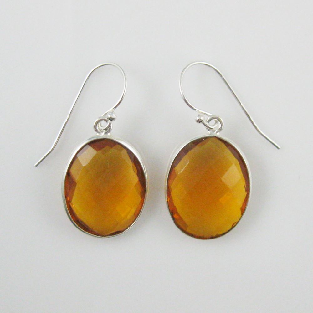 Stone: Citrine QuartzStone Shape: Faceted oval shape on both sides. Pendant Measurement: 19mm long, stone is 14mm. Total Earring Length: 30mm